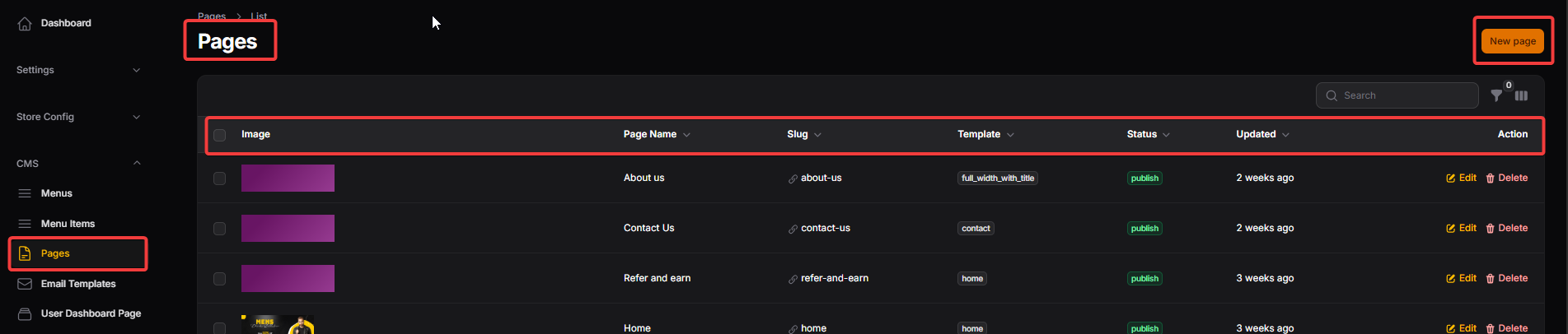 Status: Indicates the current state of the page, allowing administrators to keep it as a Draft or set it to Published for live viewing.
