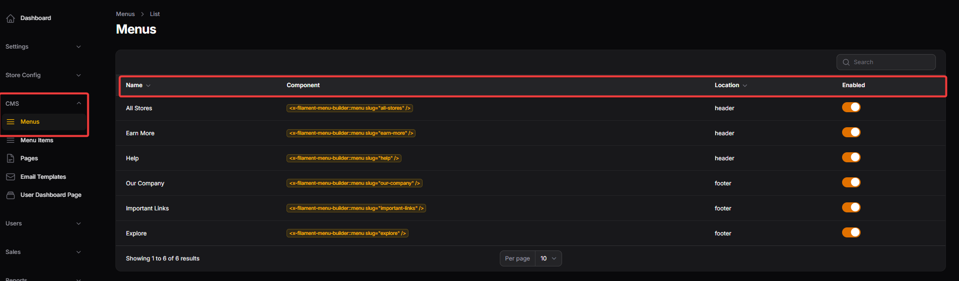 Enabled: A toggle switch that allows administrators to instantly activate or deactivate a menu, controlling its visibility on the live website without deleting the configuration.