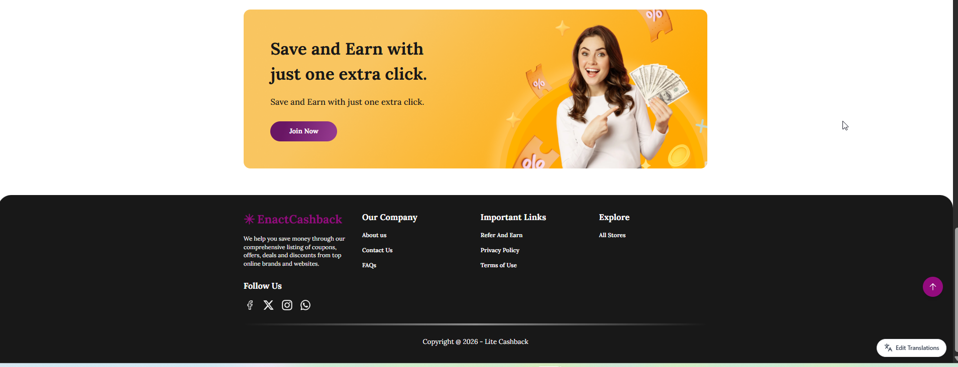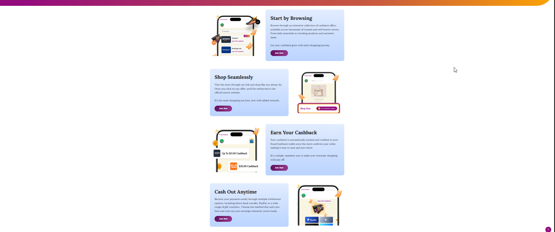 The objective of this page is to educate users about the cashback earning process and encourage them to start using the platform to earn rewards through their everyday online shopping.