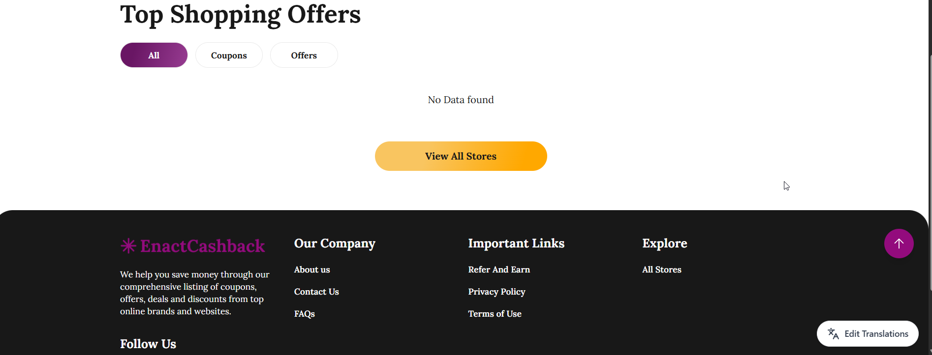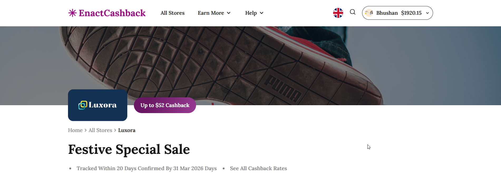 The Single Store Page provides detailed information about a specific partner store available on the EnactCashback platform. This page displays store branding, cashback offers, promotional campaigns, and available deals or coupons related to the store.