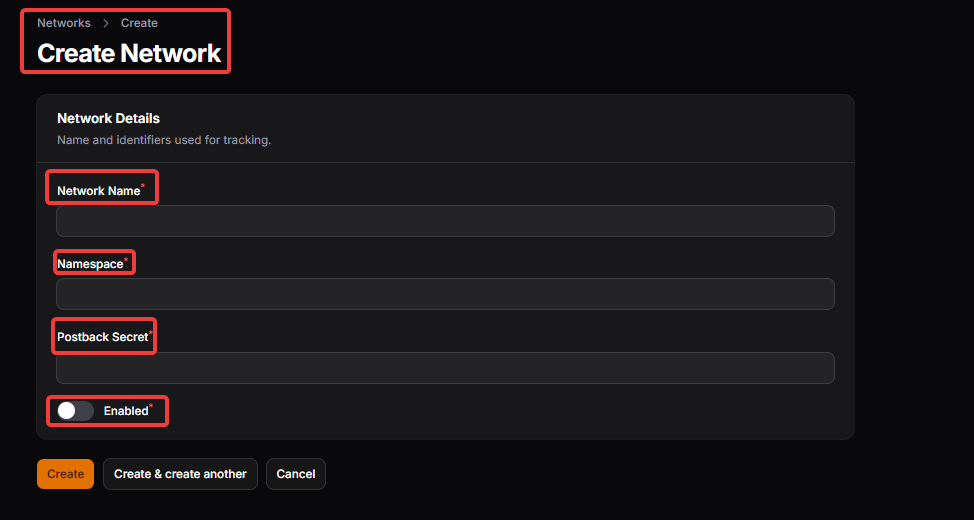 Network Name: This identifies the affiliate network inside the system. It is used for internal reference and display purposes in listings and reports.