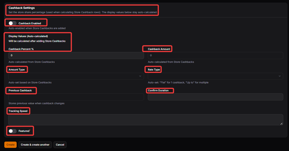 User Cashback (Auto-calculated): Auto-calculated: Commission × (Store cashback_percent / 100).