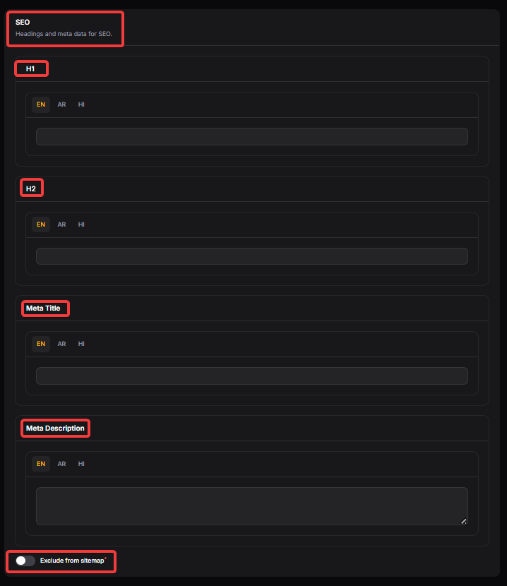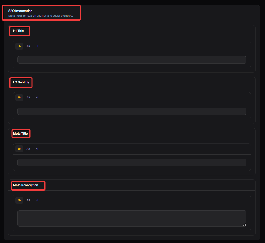 H1 Title : H1 is the main heading of the store page and is mainly used for SEO and as the primary title visible on the store detail page.