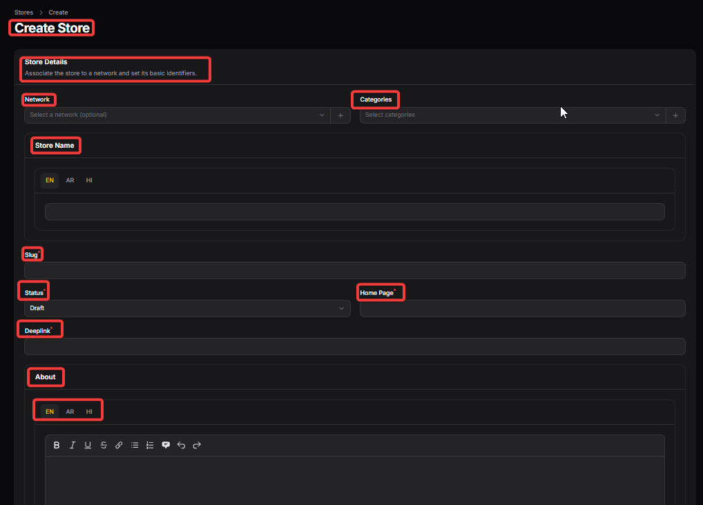 Categories : Cats (Categories) are used to group the store under relevant store categories like Fashion, Electronics, Travel, etc. This helps users find stores easily through category filters and improves site navigation.