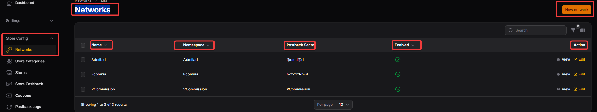 Network: Displays the affiliate network the store belongs to, helping identify partnerships and performance.